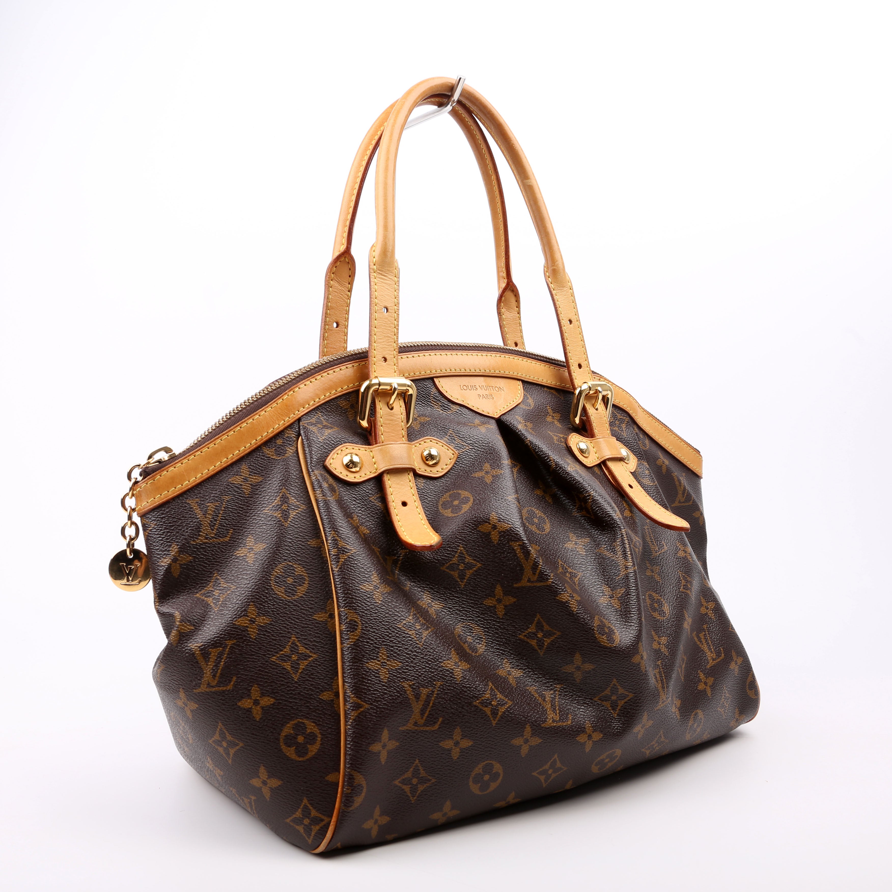 Louis Vuitton Tivoli GM . The exterior is in the classic Louis Vuitton Monogram coated canvas.Â