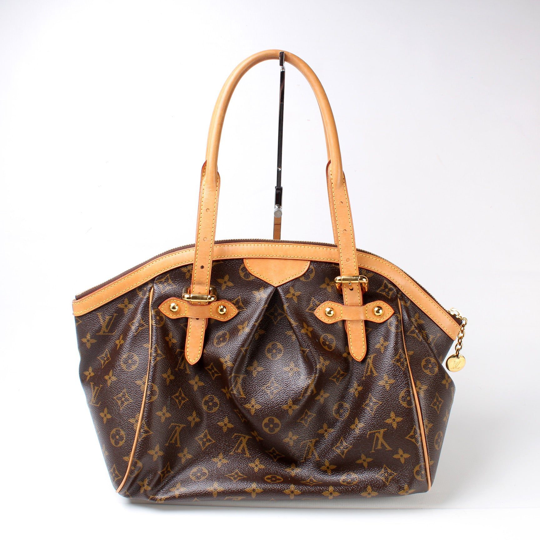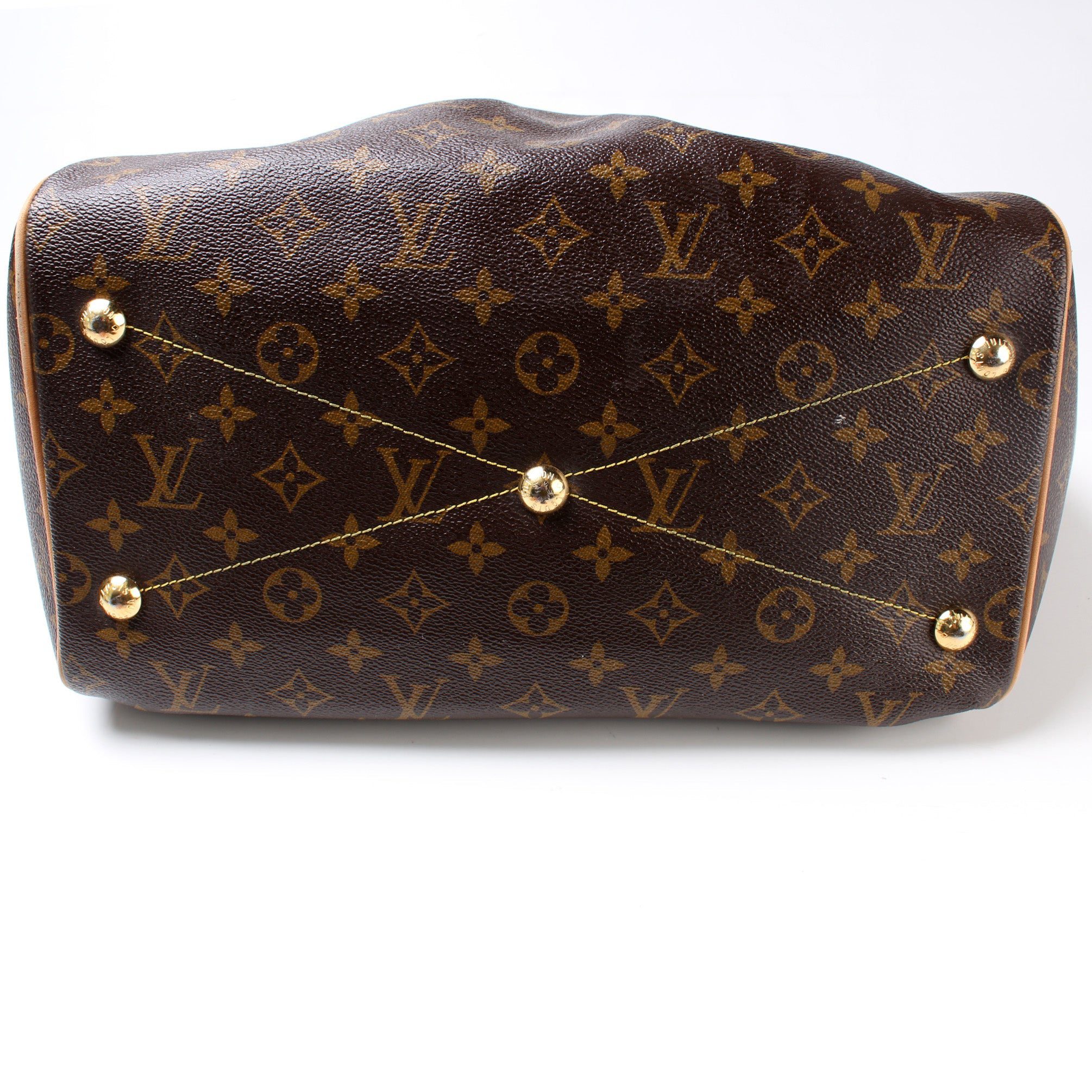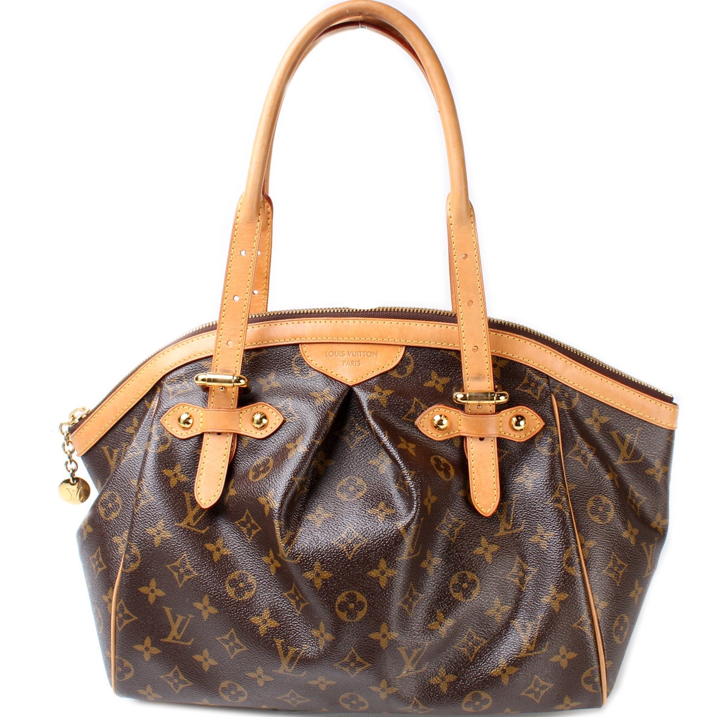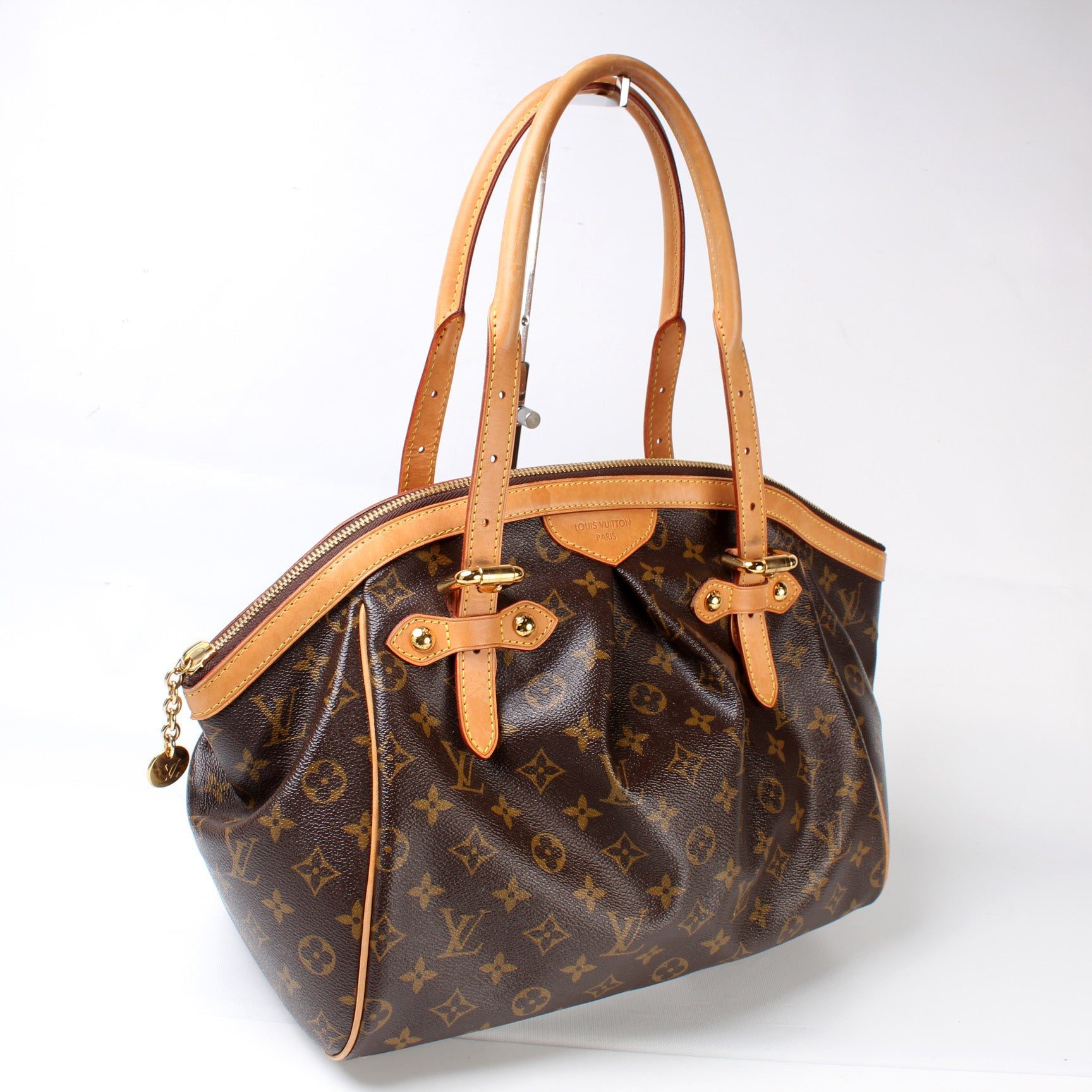 Louis Vuitton Tivoli GM. The exterior is in the classic Monogram coated canvas.Â