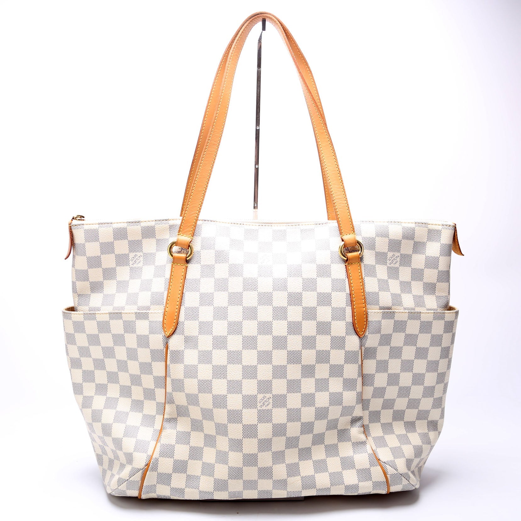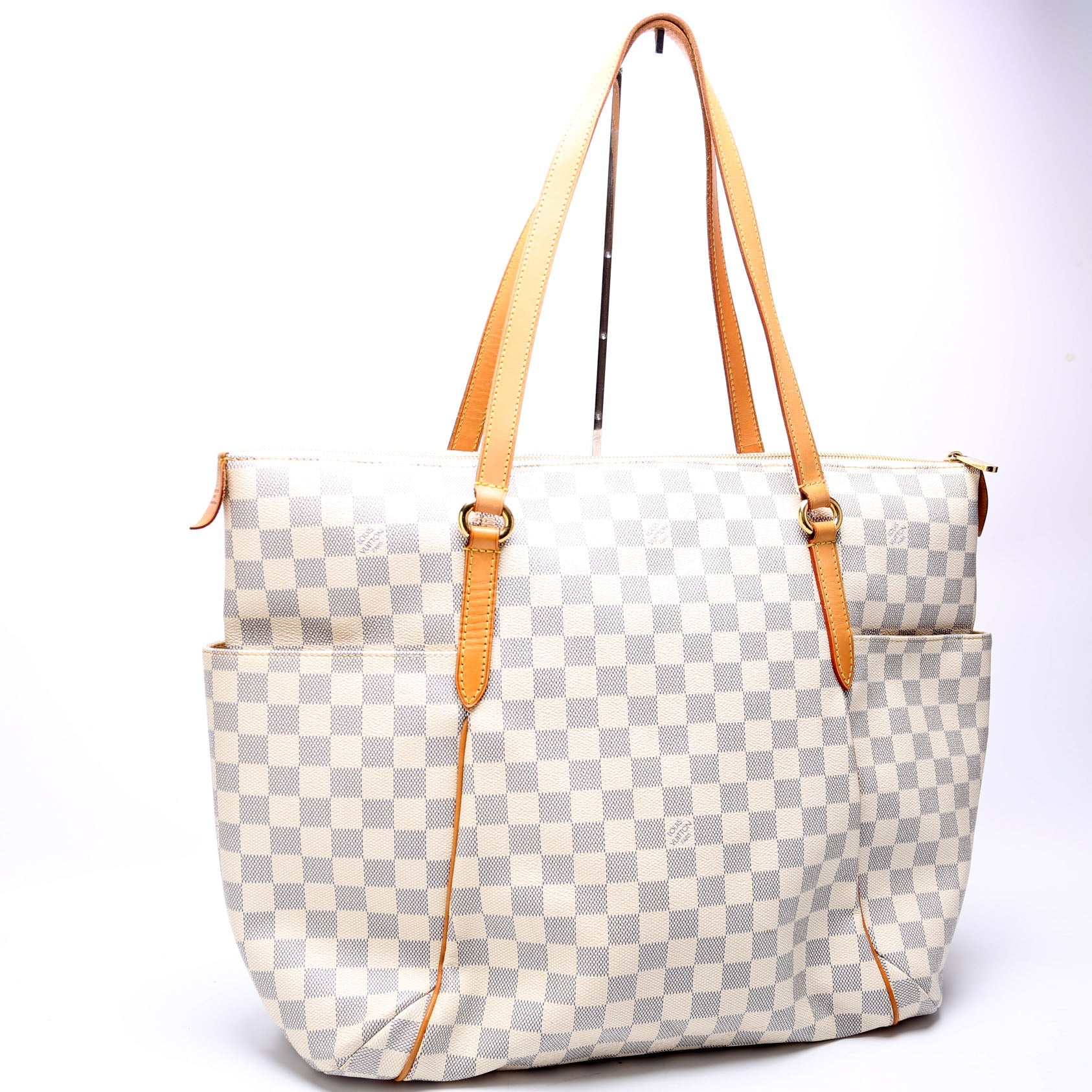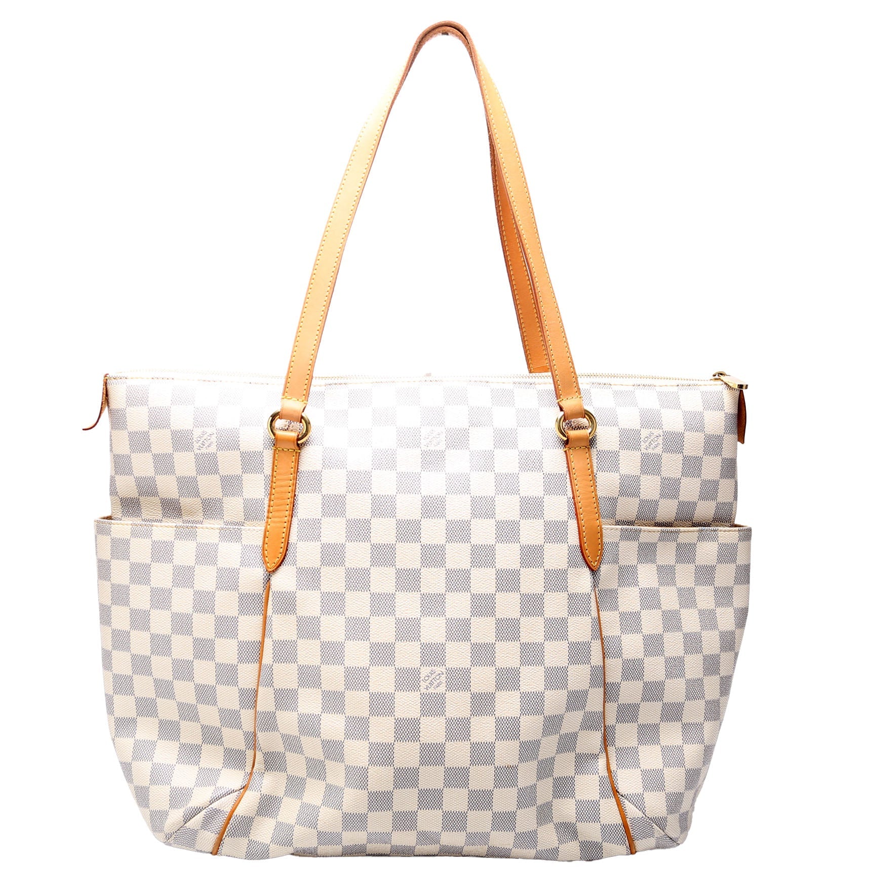 Louis Vuitton Totally GM . The exterior is in the classic Louis Vuitton Damier Azur coated canvas.Â