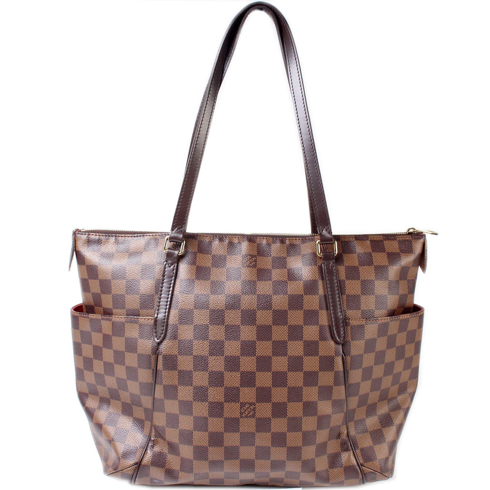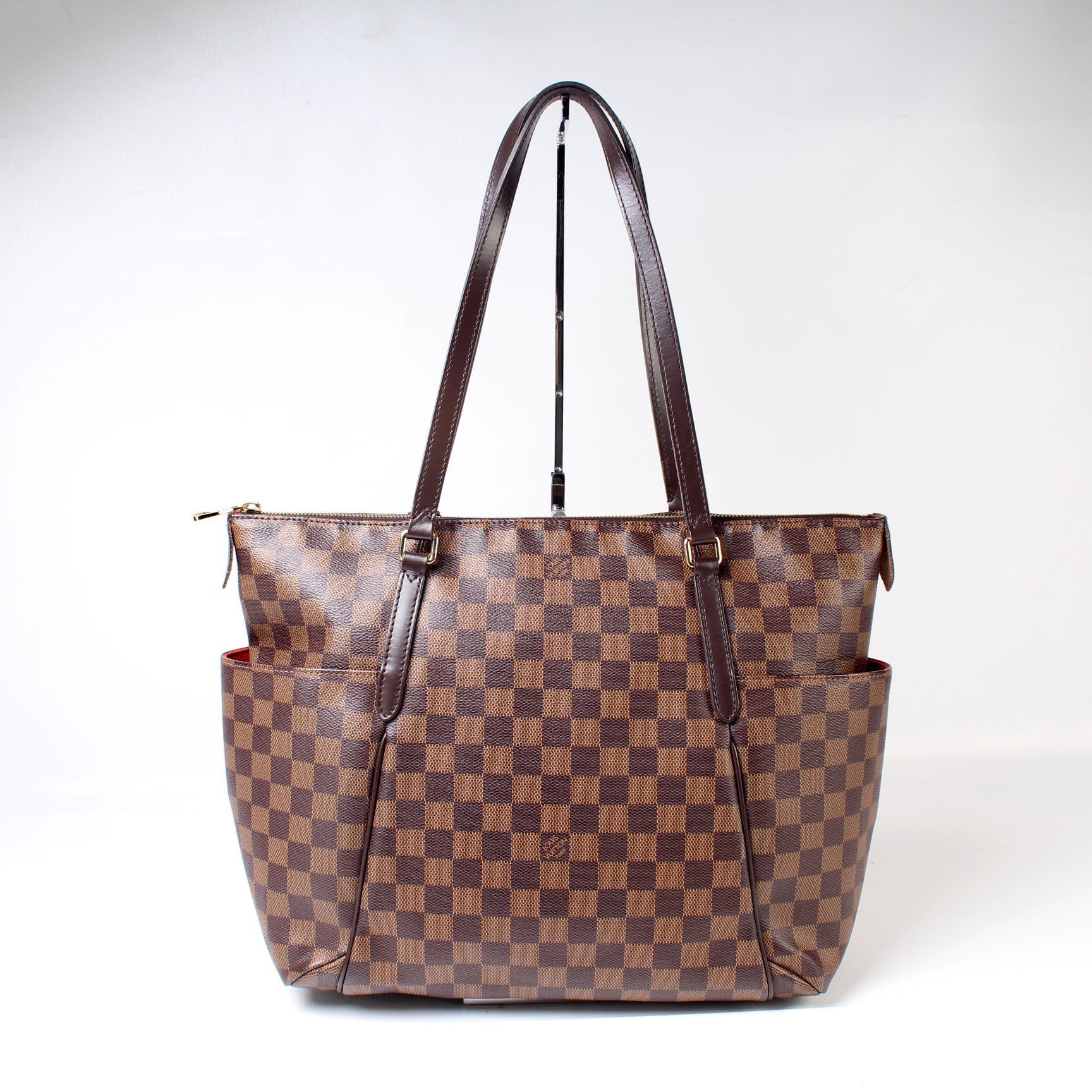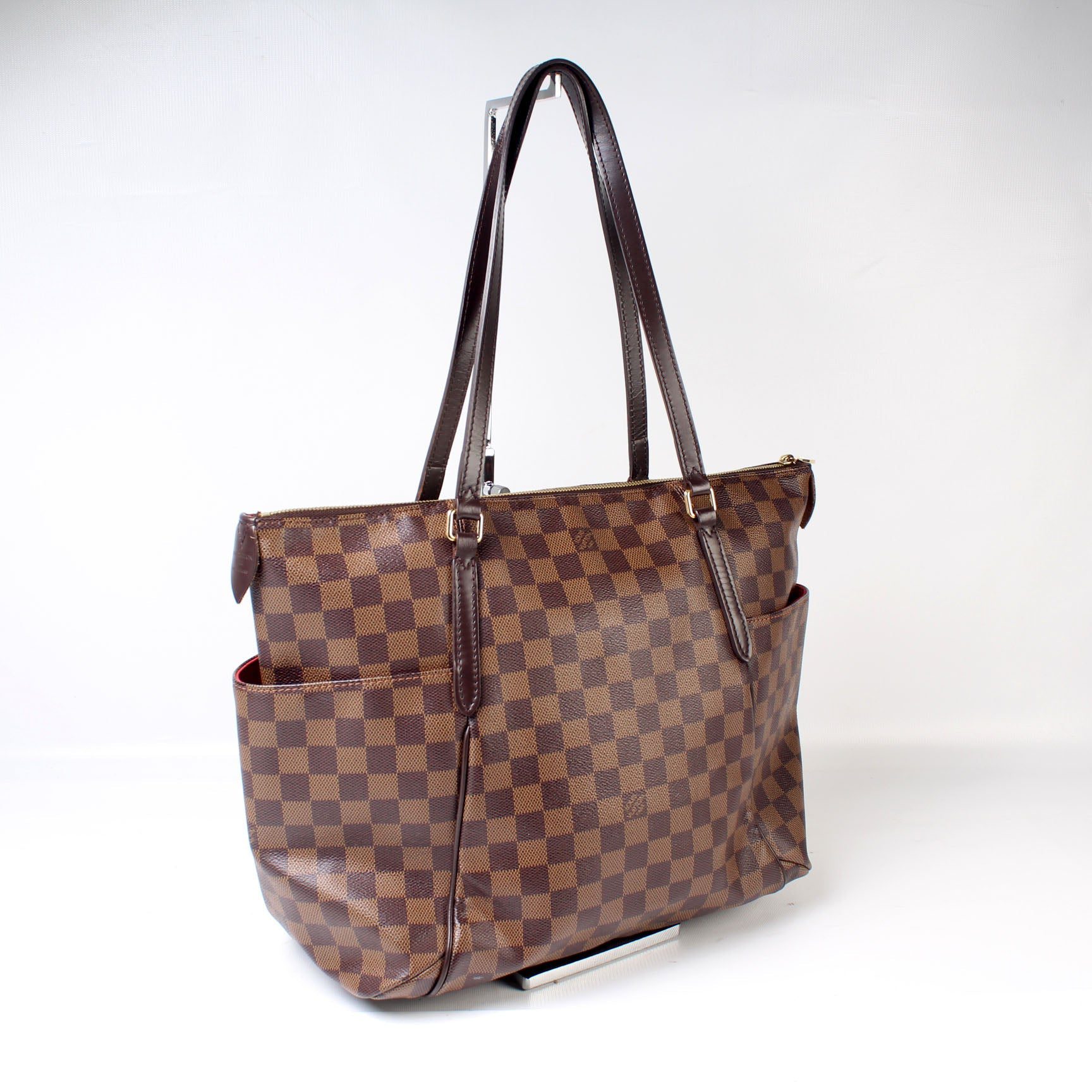 Louis Vuitton Totally MM. The exterior is in the classic Damier Ebene coated canvas.