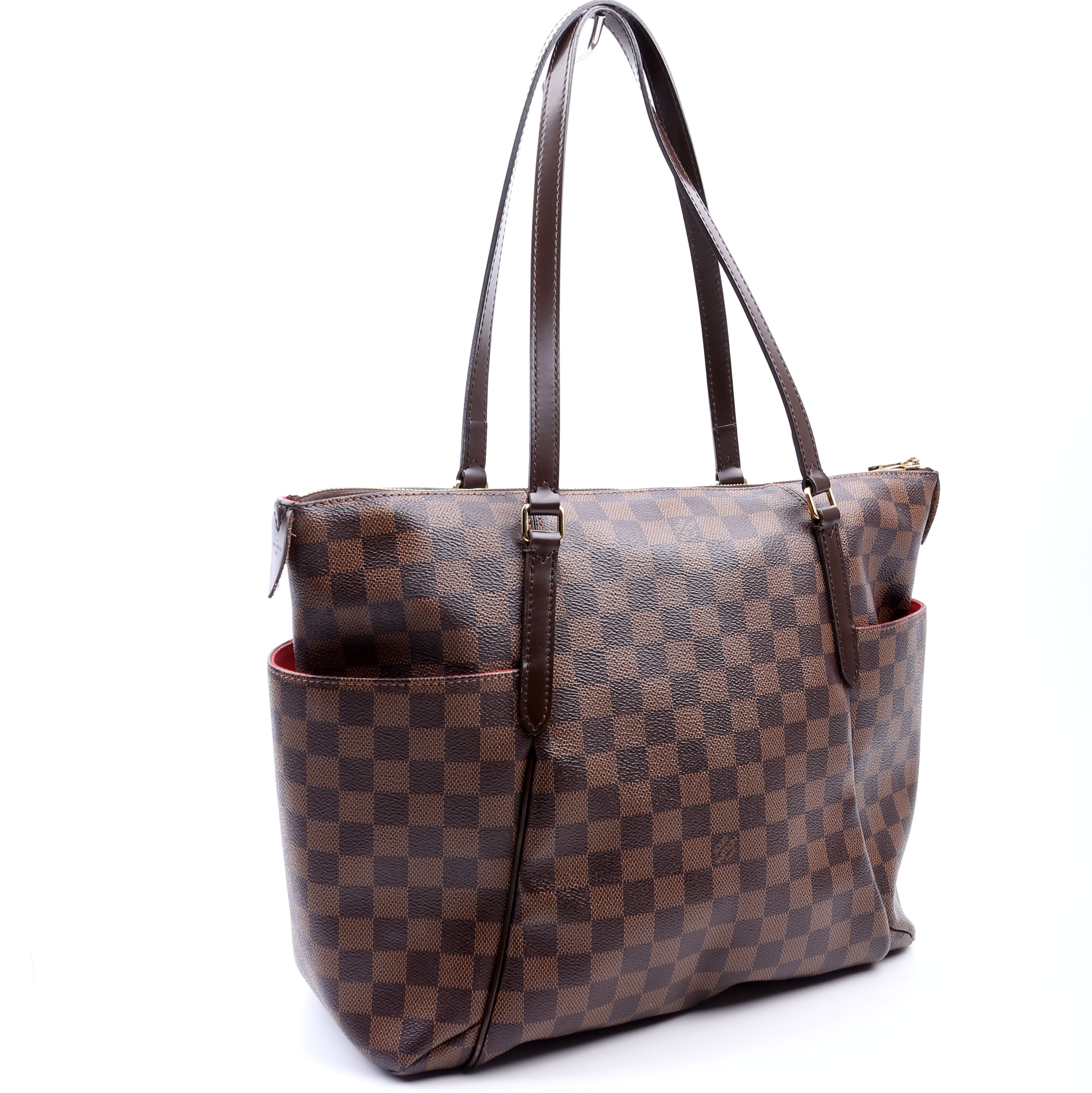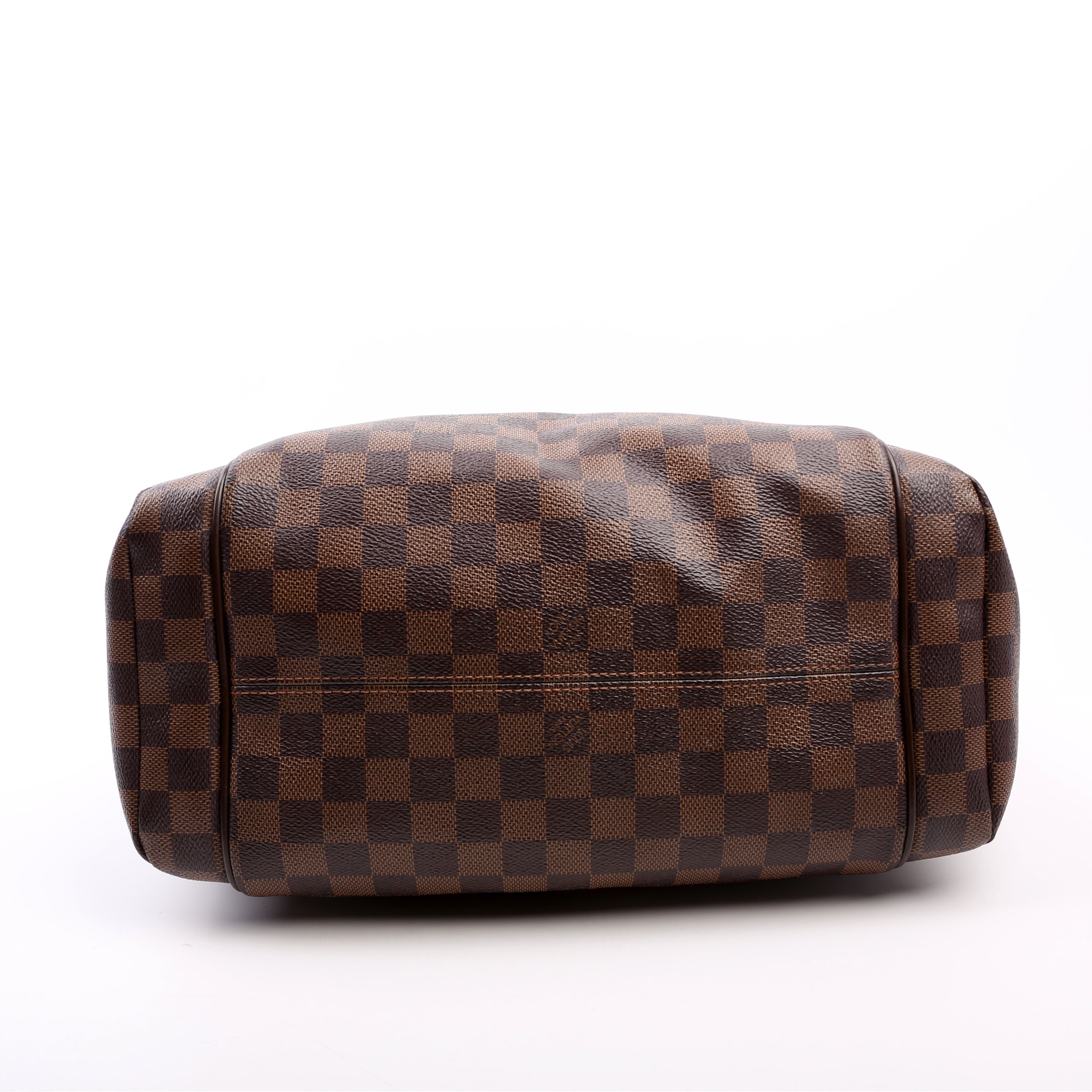 Louis Vuitton Totally MM . The exterior is in the classic Louis Vuitton Damier Ebene coated canvas.