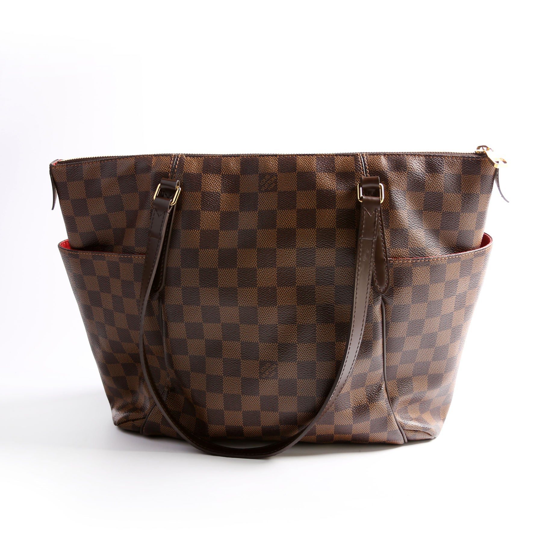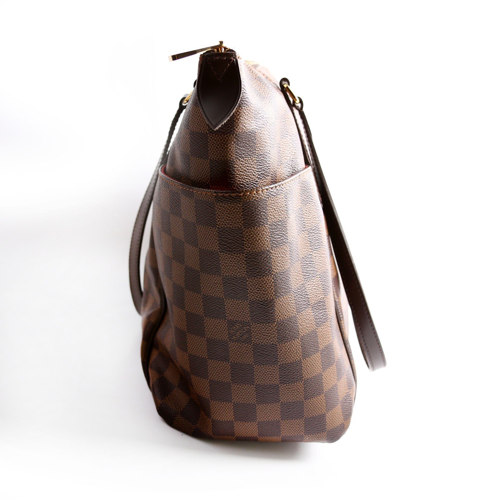 Louis Vuitton Totally MM . The exterior is in the classic Louis Vuitton Damier Ebene coated canvas.Â
