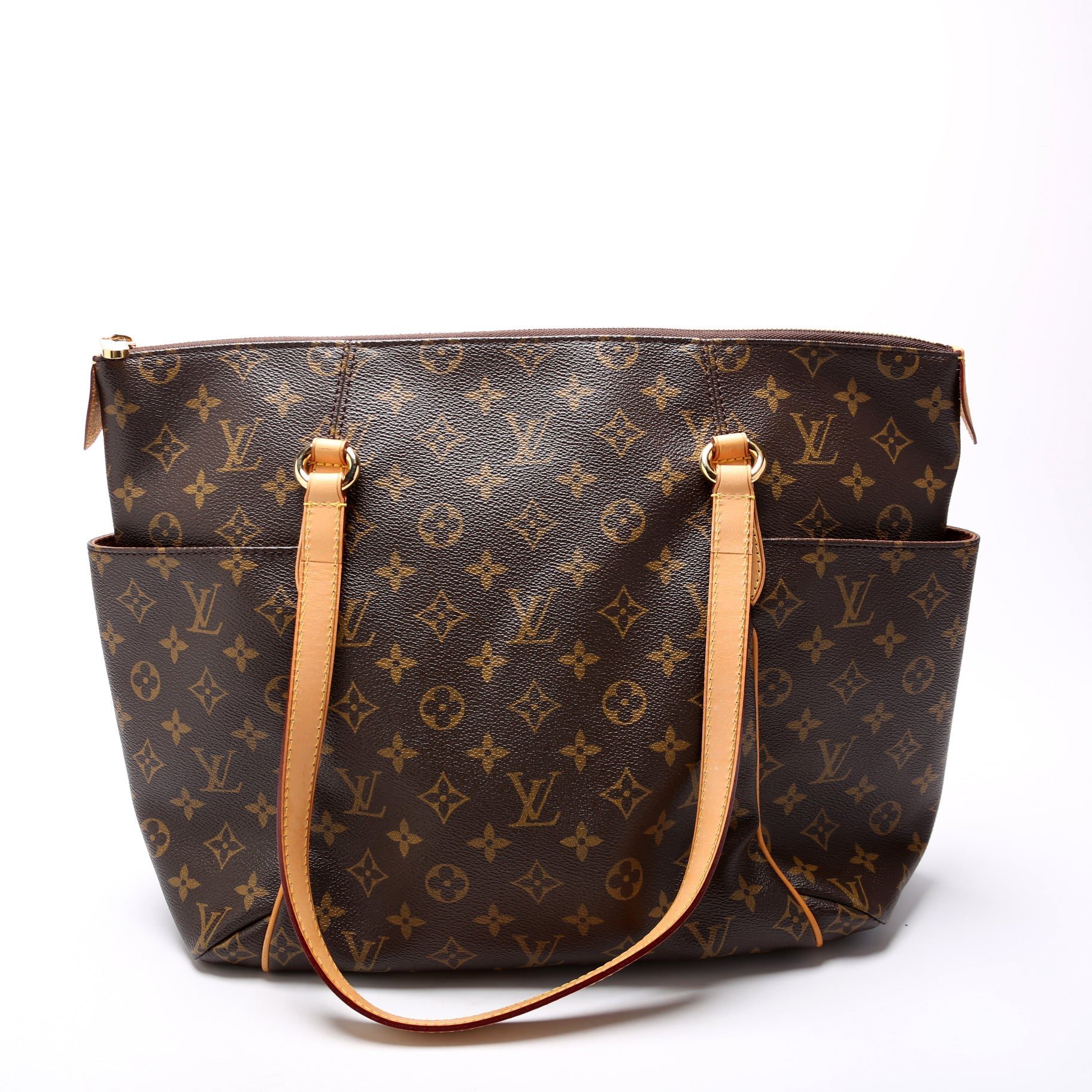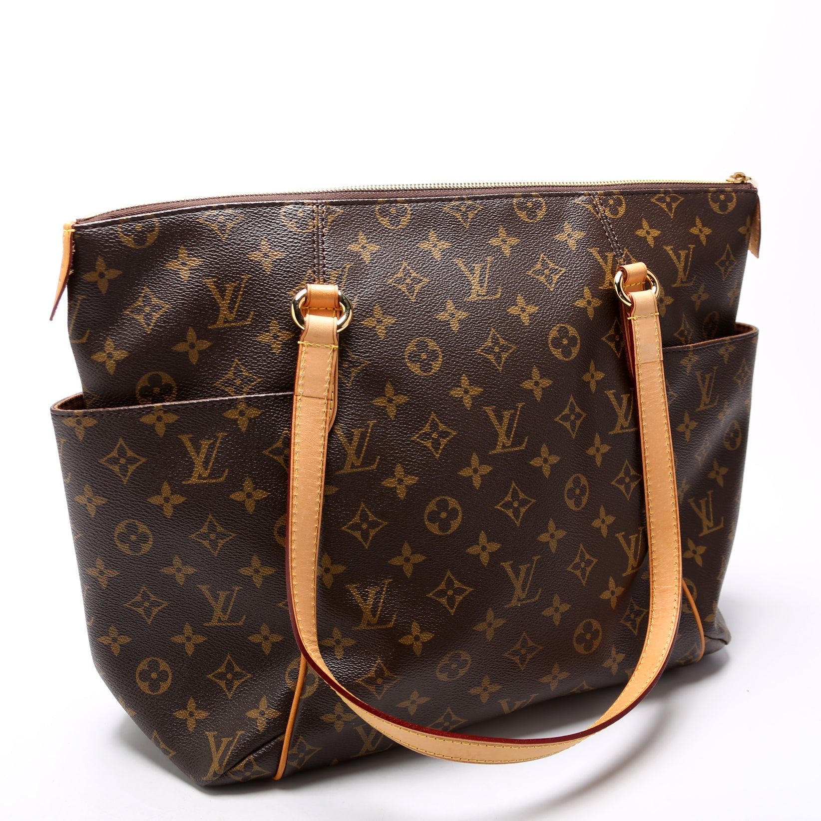 Louis Vuitton Totally MM. The exterior is in the classic Louis Vuitton Damier Monogram coated canvas.Â