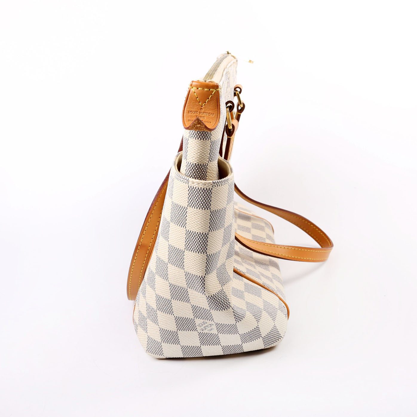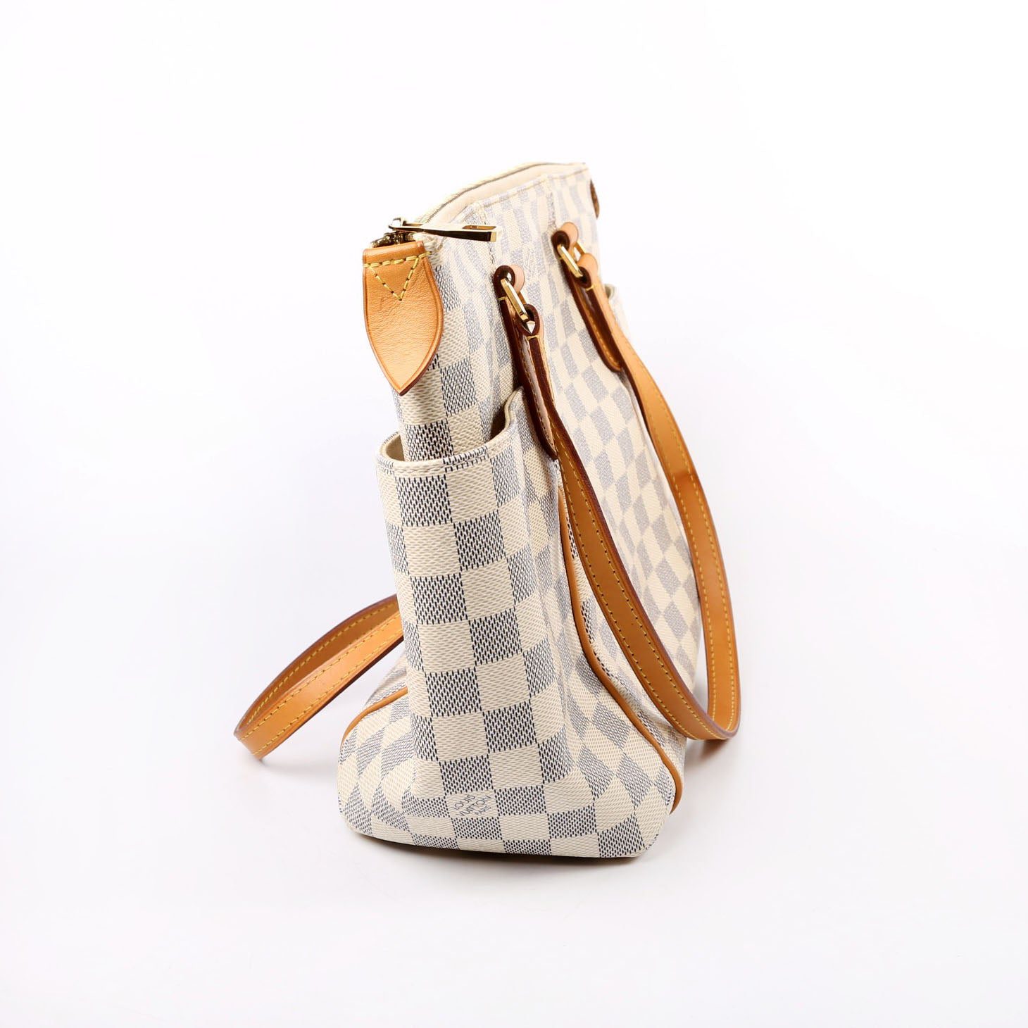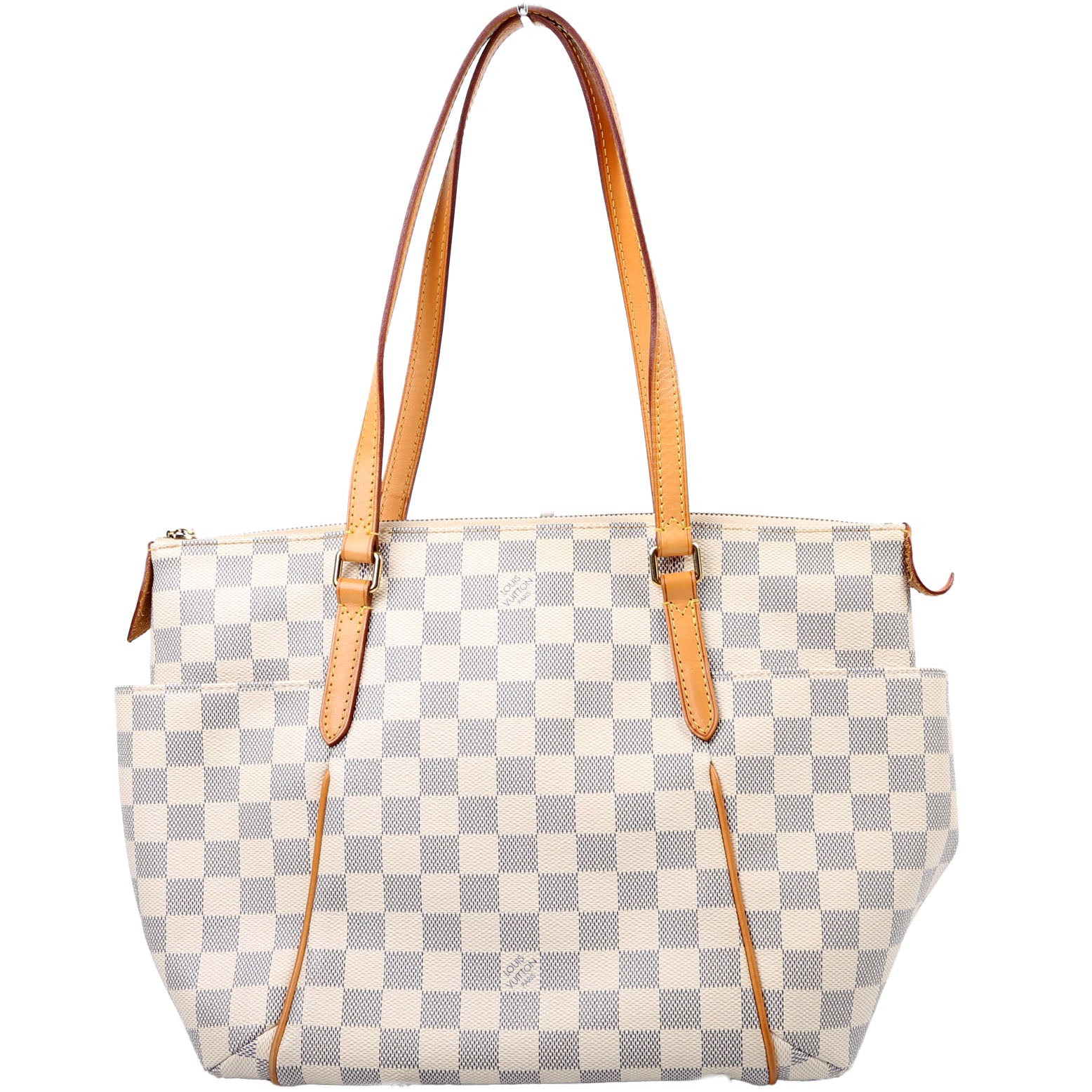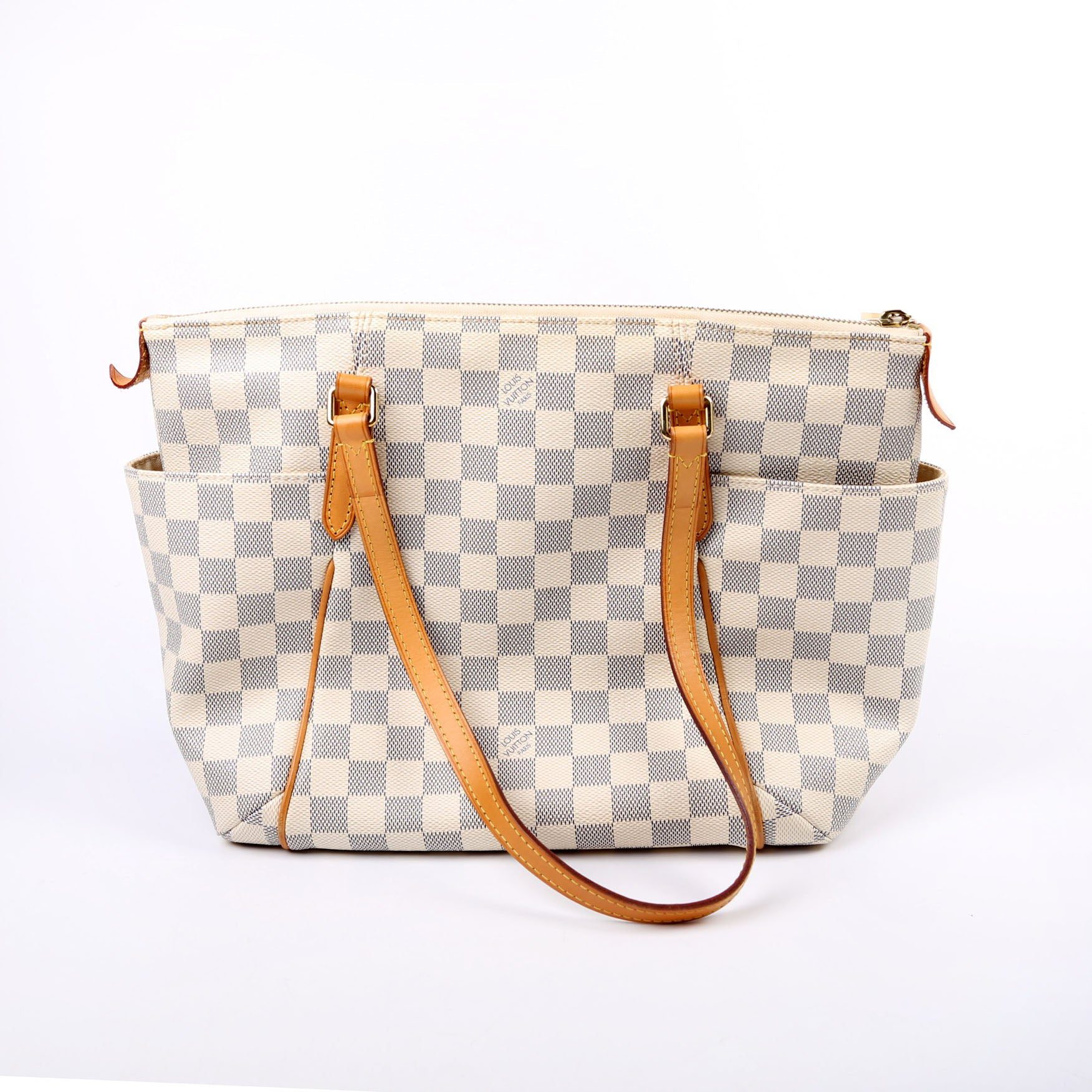 Louis Vuitton Totally PM . The exterior is in the classic Damier Azur coated canvas. Â