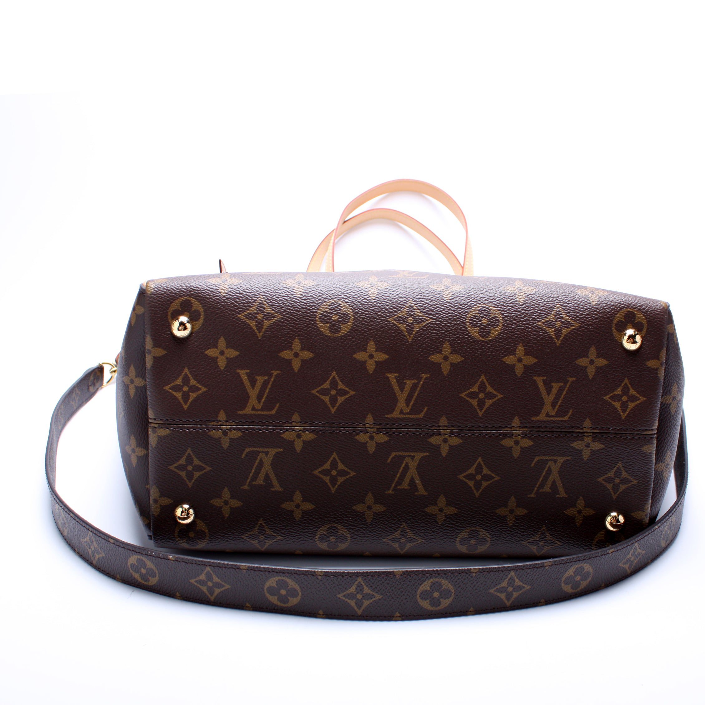 Louis Vuitton Tournelle MM. The exterior is in the classic Louis Vuitton Monogram coated canvas.