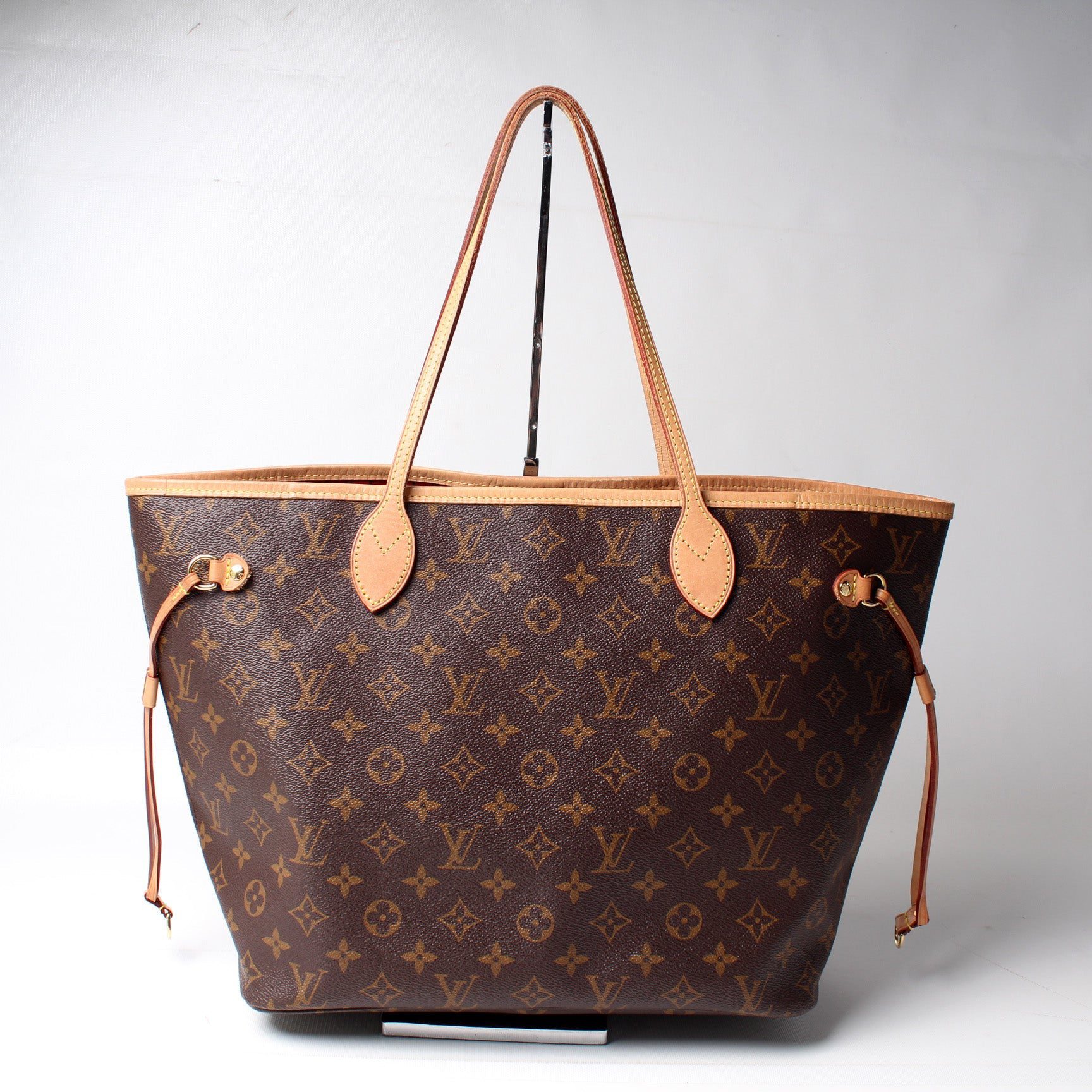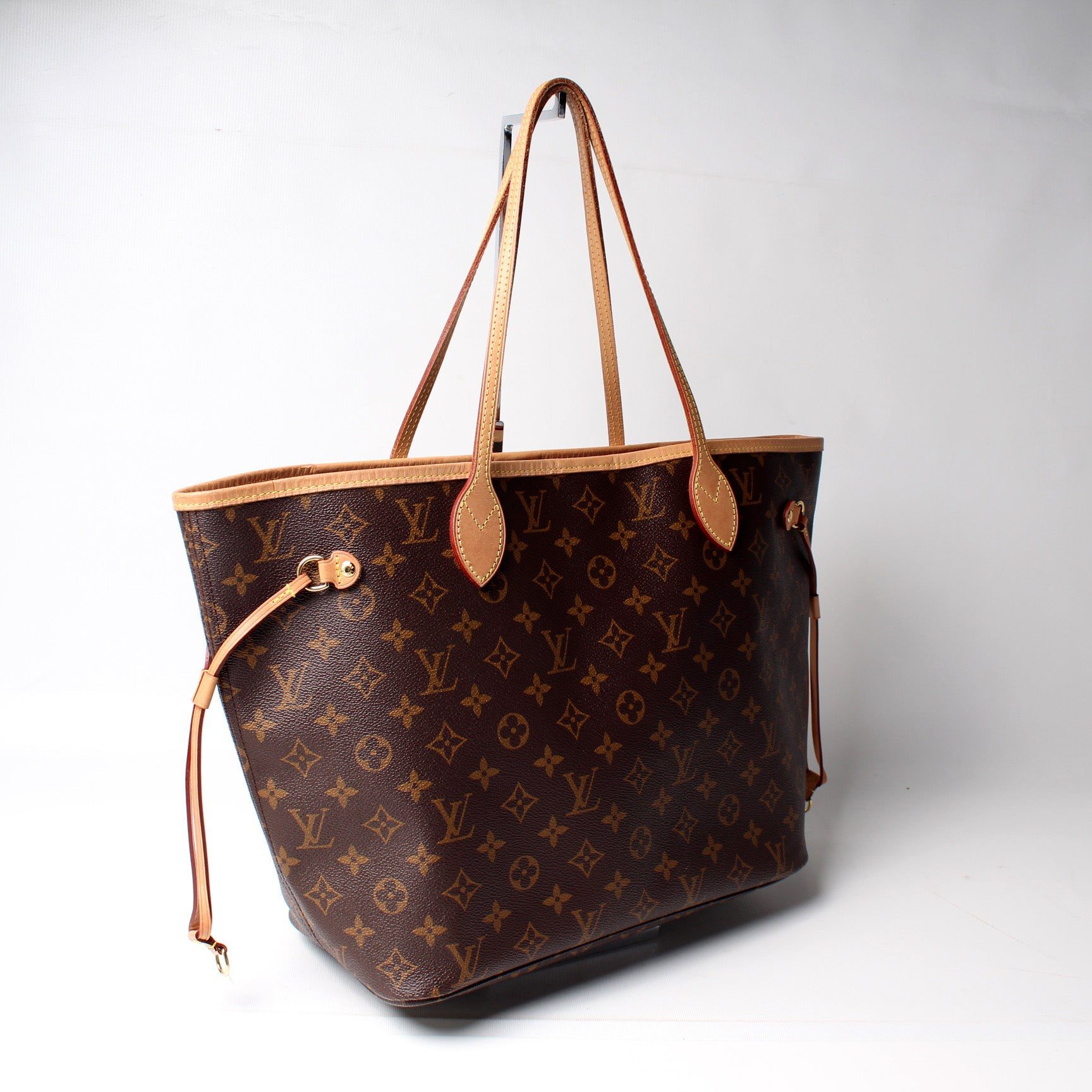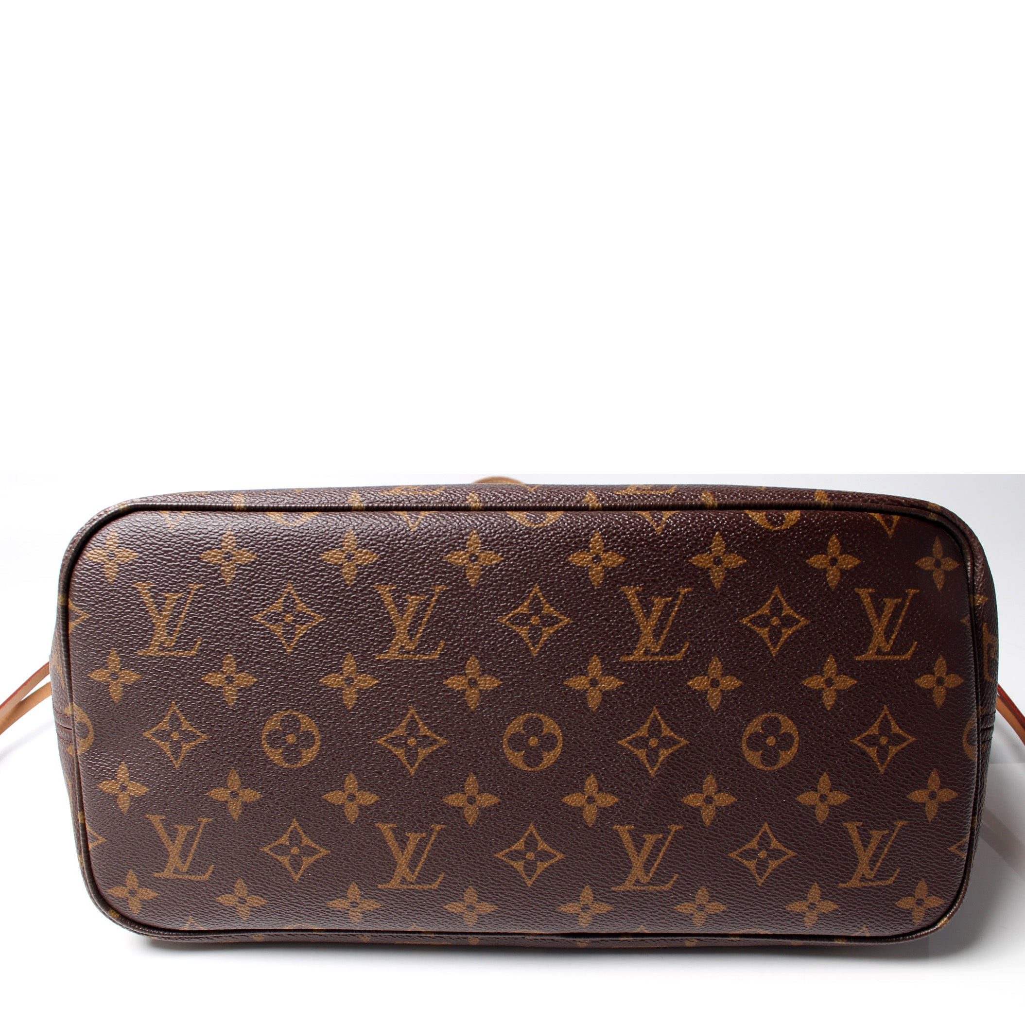 Louis Vuitton Neverfull MM. The exterior is in the classic Louis Vuitton Monogram coated canvas.Â