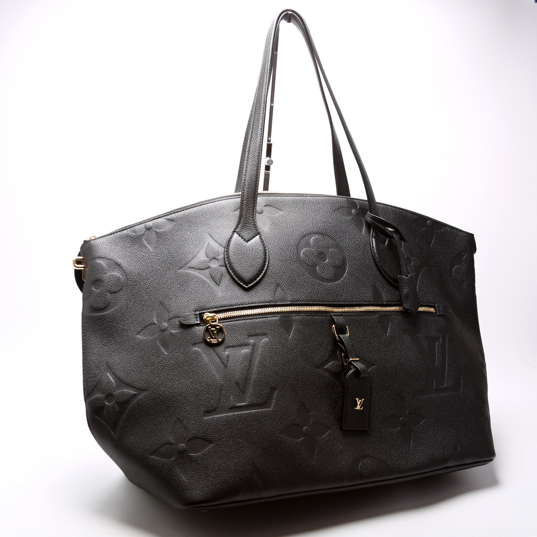 Louis Vuitton Travel Bag NM. The exterior is in the classic Louis Vuitton Empreinte Leather.Â