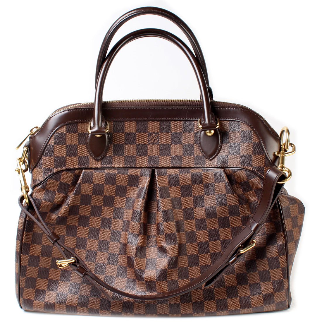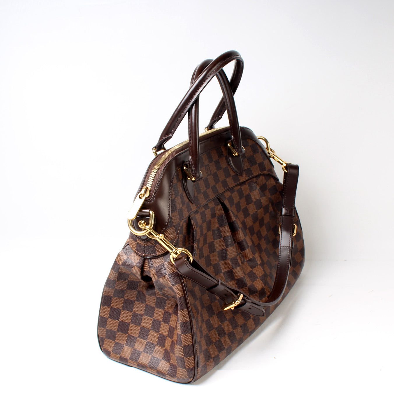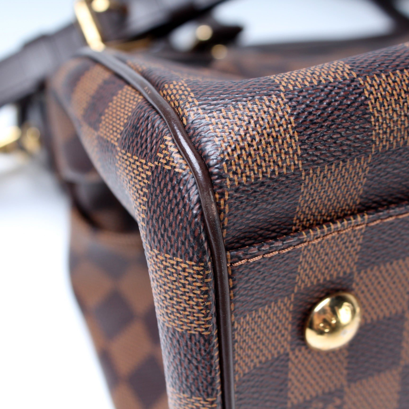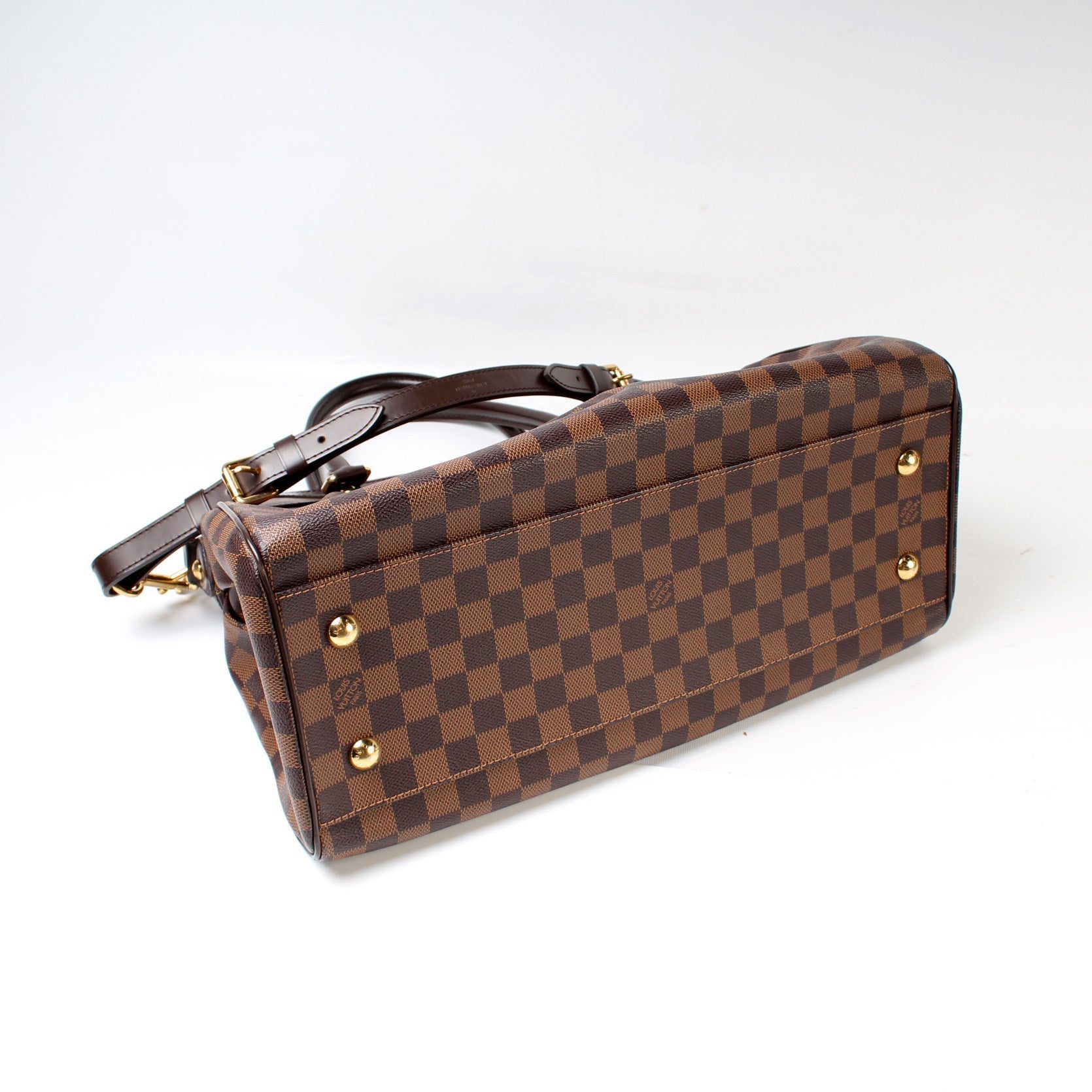 Louis Vuitton Trevi GM. The exterior is in the classic Louis Vuitton Damier Ebene coated canvas.Â