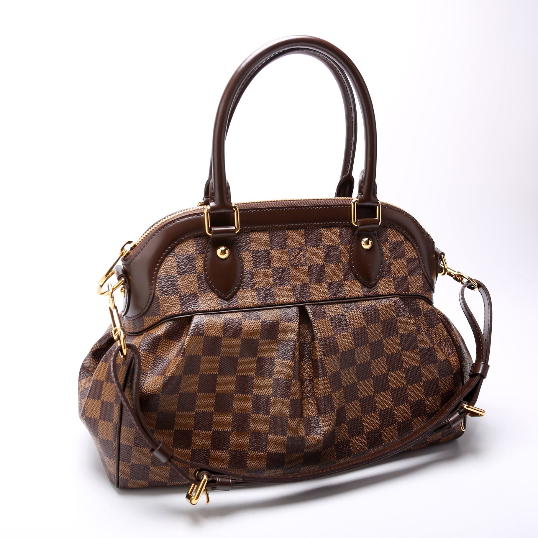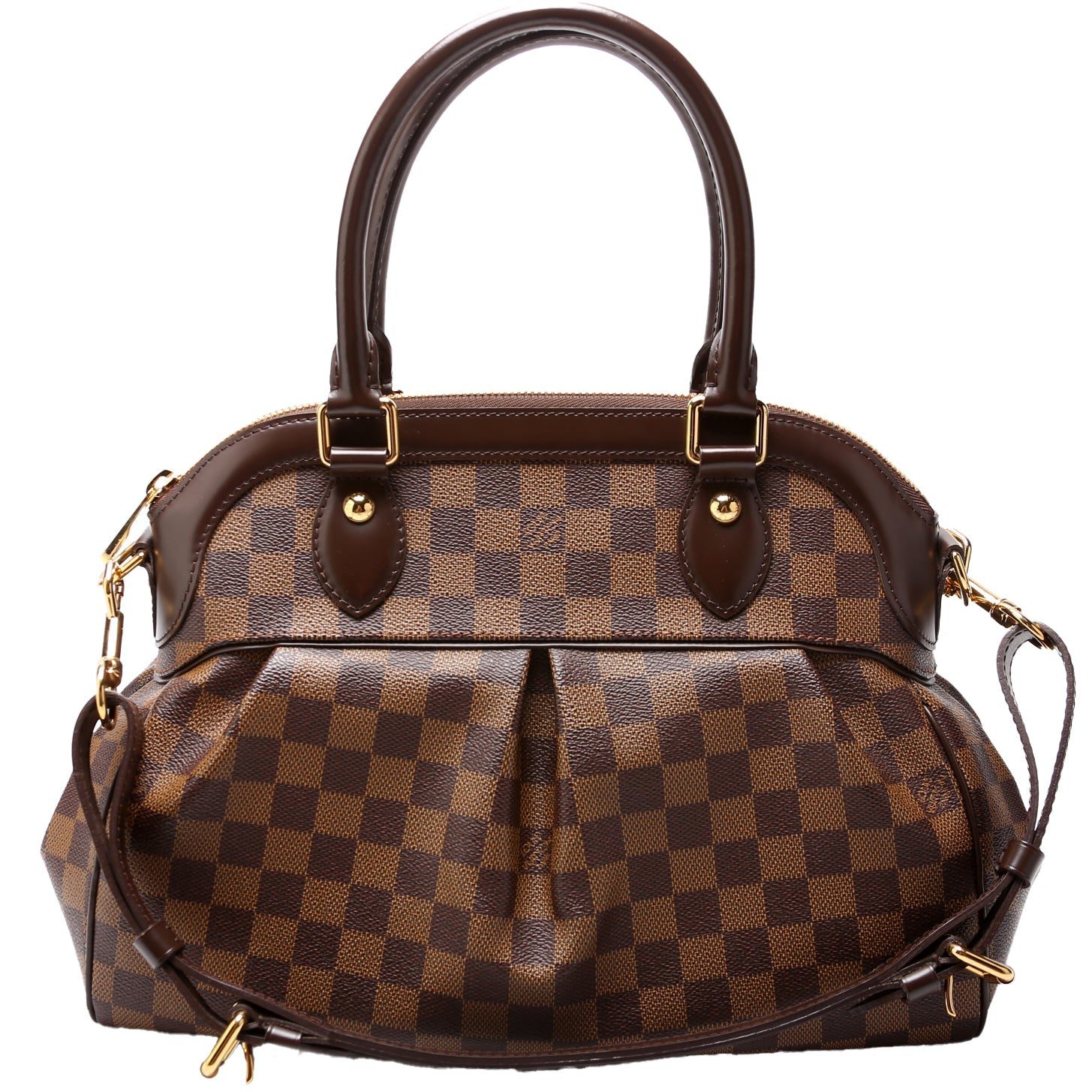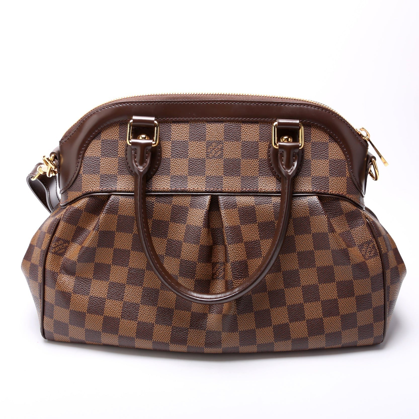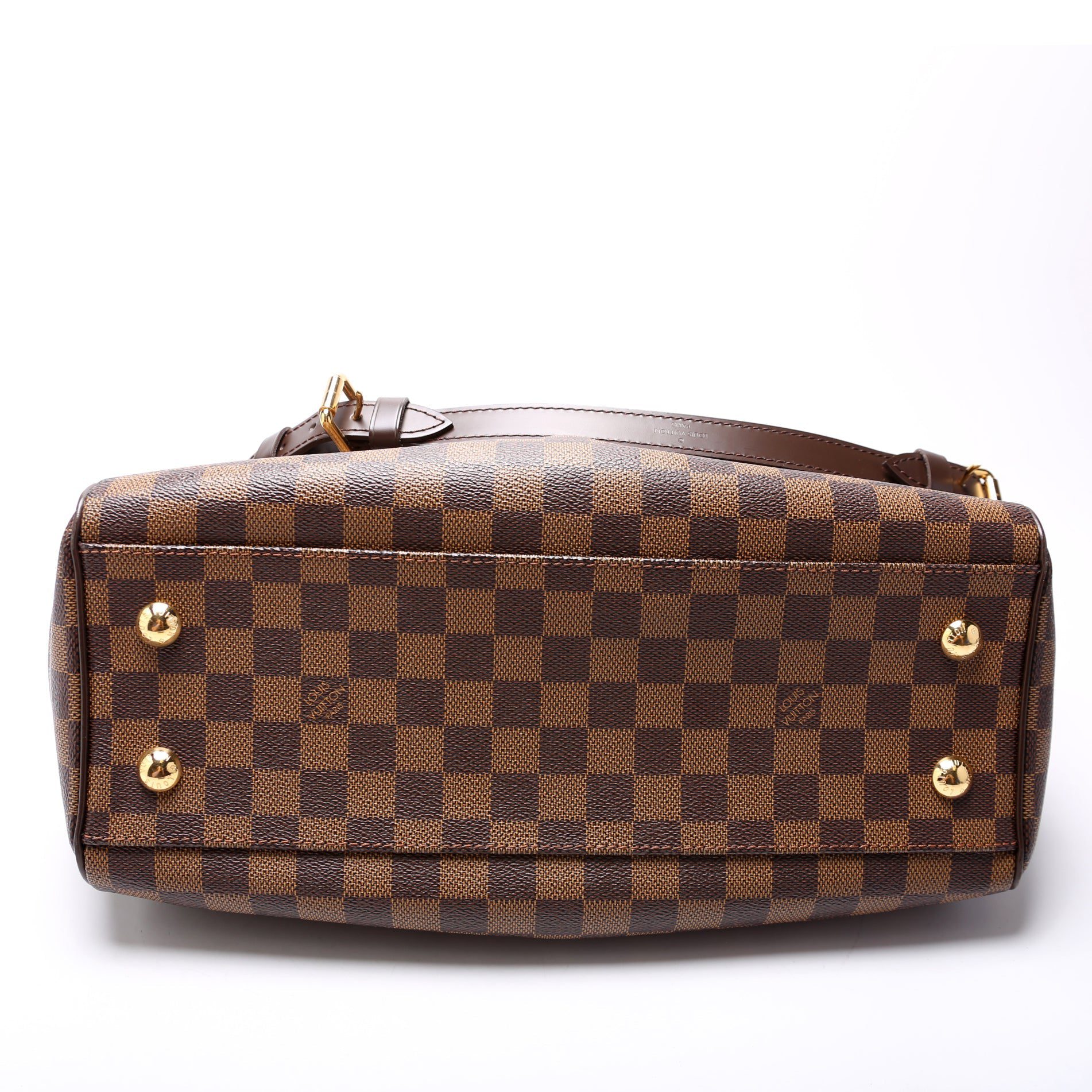 Louis Vuitton Trevi GM. The exterior is in the classic Louis Vuitton Damier Ebene coated canvas.Â
