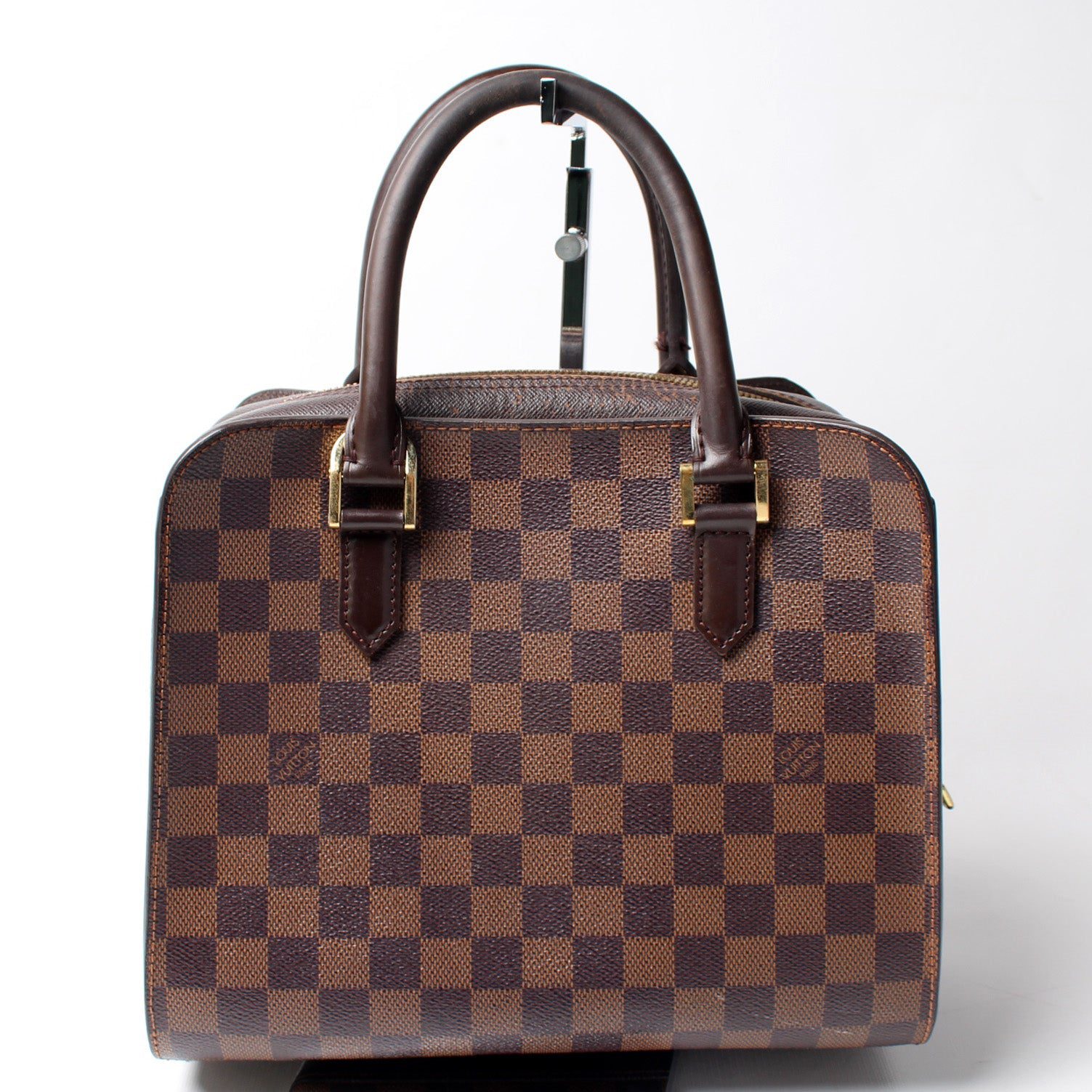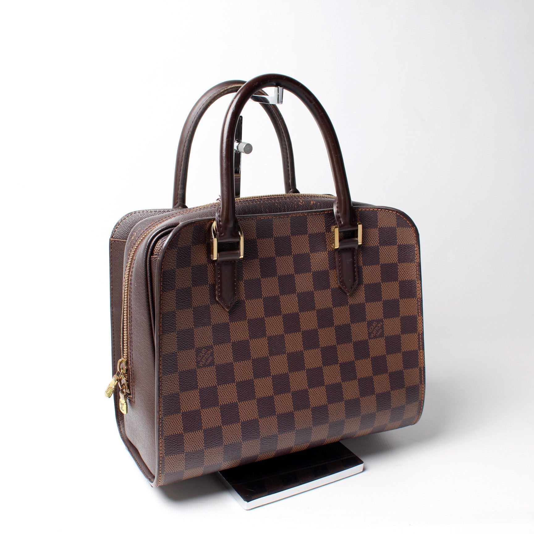 Louis Vuitton Triana. The exterior is in the classic Louis Vuitton Damier Ebene coated canvas.Â