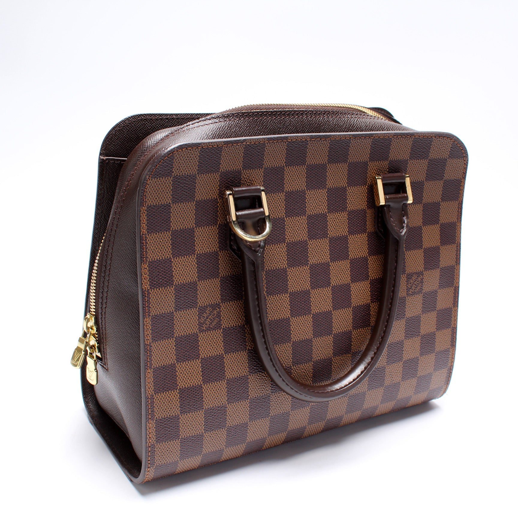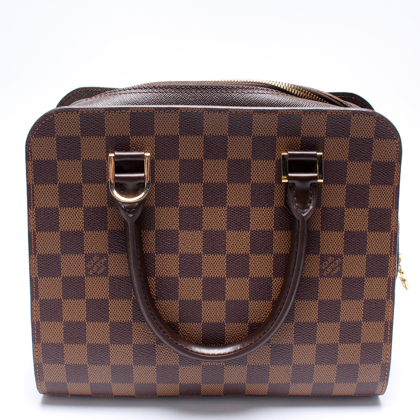 Louis Vuitton Triana. The exterior is in the classic Louis Vuitton Damier Ebene coated canvas.Â