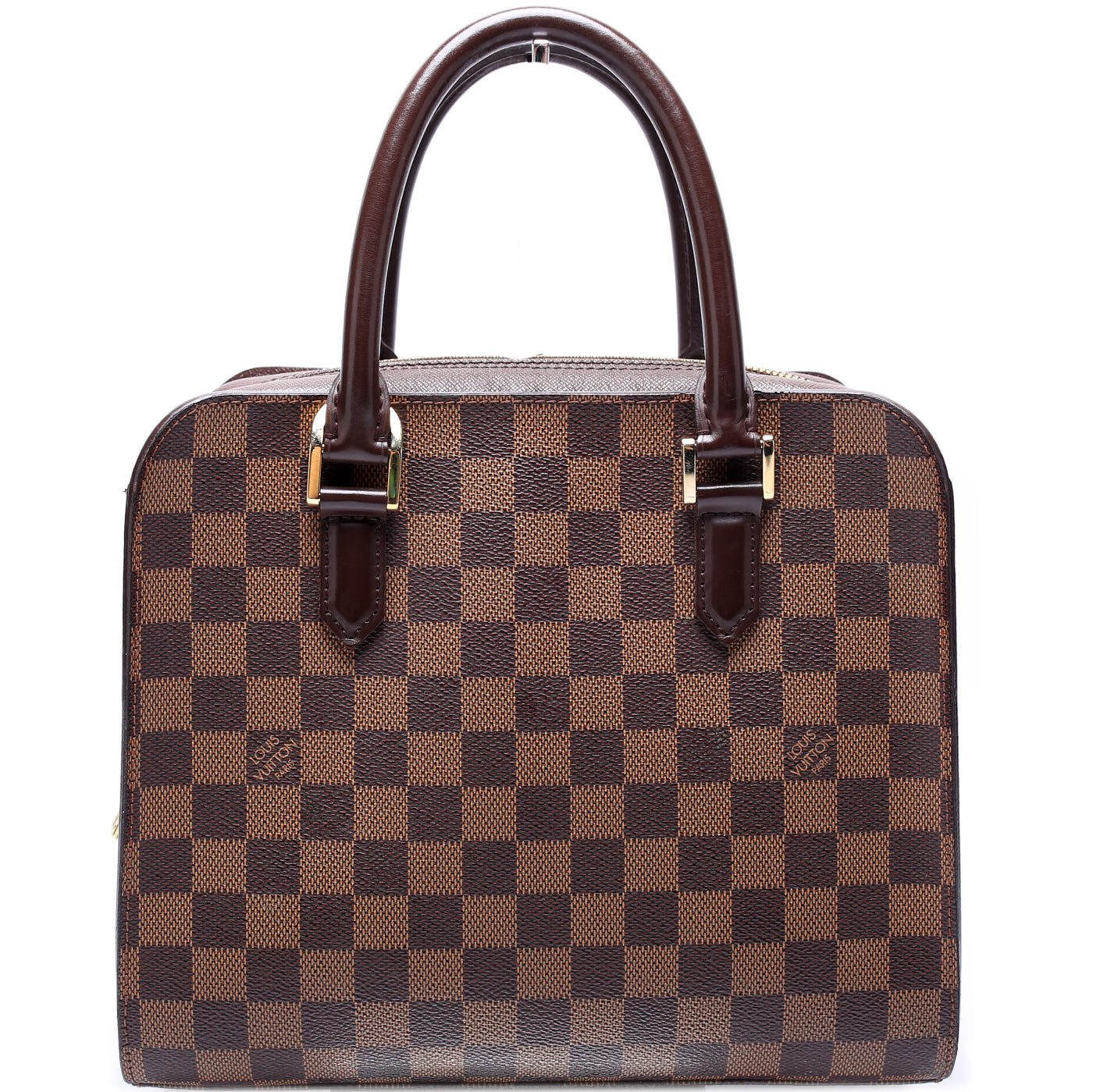 Louis Vuitton Triana. The exterior is in the classic Louis Vuitton Damier Ebene coated canvas.Â